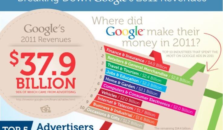 Las búsquedas patrocinadas, llamadas Google AdWords y los espacios de publicidad de Google en la GDN (Google Display Network) constituyen el 91% del volumen de negocio de Google. Y a su vez, Google AdWords constituyen el volumen de negocio de muchas agencias de publicidad en Internet, que gestionan la estrategia de AdWords de las empresas que quieren anunciarse en Google para que su dinero invertido en anuncios rinda lo máximo posible.