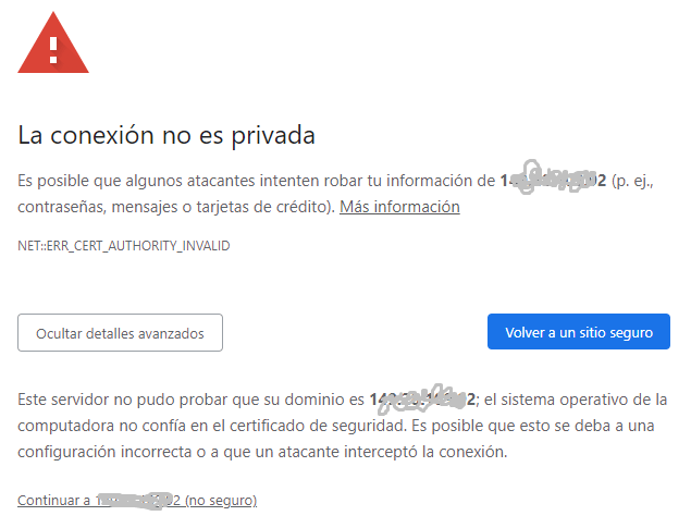 Los navegadores web están diseñados para mostrar una advertencia de seguridad cuando se detecta que un sitio web utiliza un certificado SSL/TLS autofirmado.
